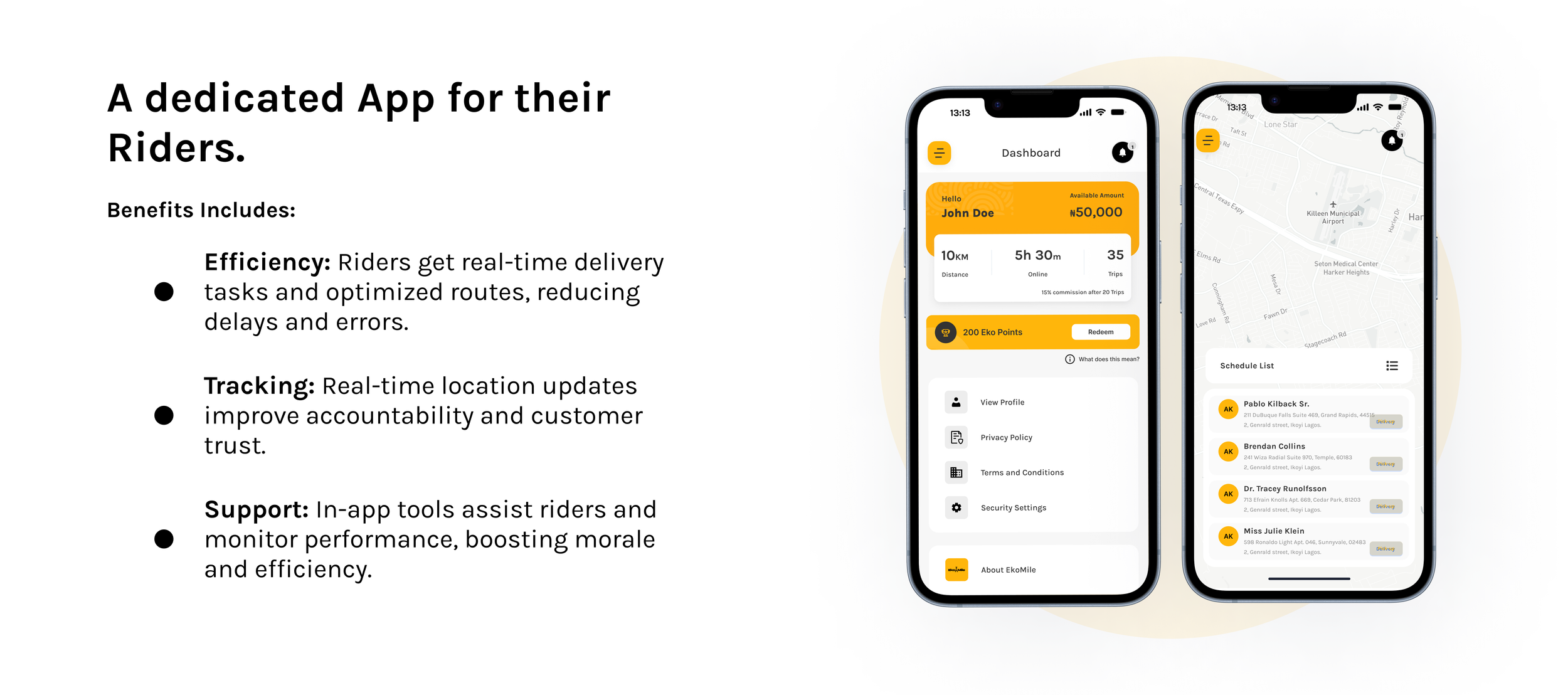 Traffic congestion in Lagos, Nigeria, poses significant challenges for sending items across the city, causing delays and higher operational costs. This inspired Ekomile to ask: How can we make deliveries faster, more convenient and less expensive?